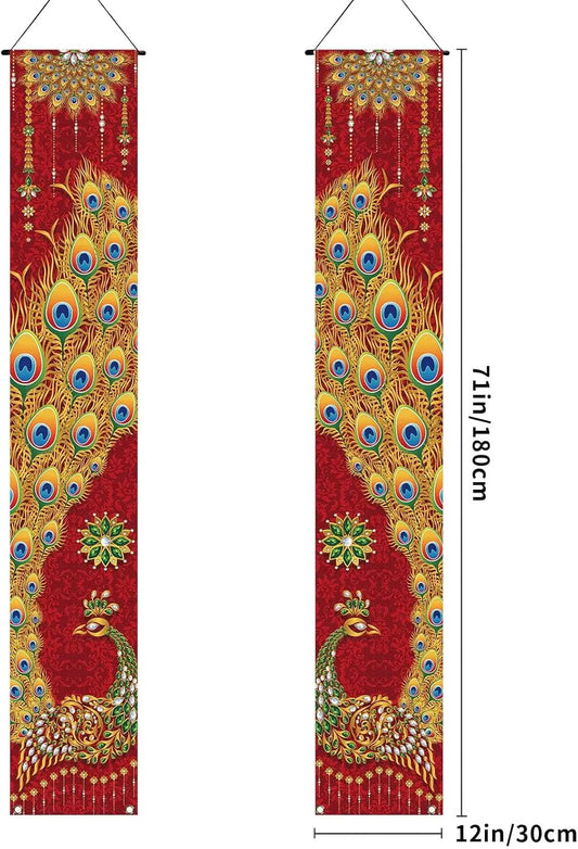 Diwali Festival Banner – Peacock Gateway Welcome Sign for Front Porch Party Decoration